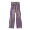 Crafted from durable denim, these jeans showcase intricate lace-up details and eye-catching plaid patchwork for a unique style statement.